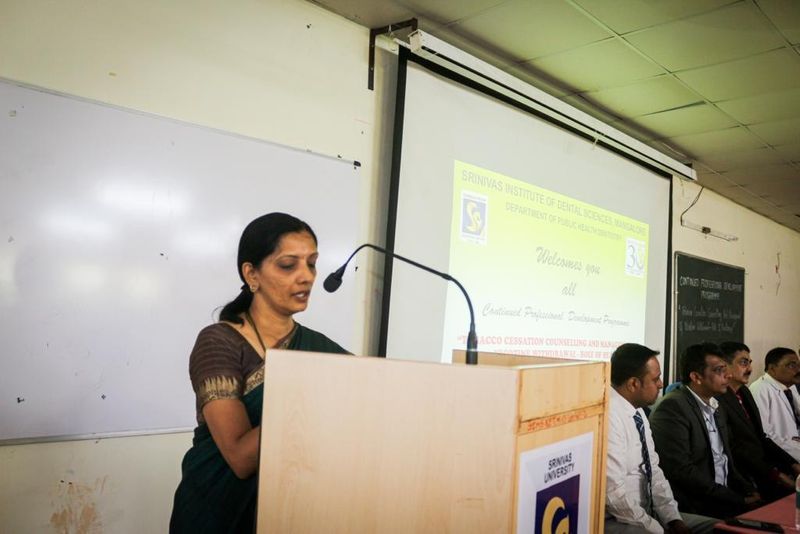 Srinivas Institute of Dental Sciences organised a Continuing Professional Development Program to update medical and dental professionals regarding behavioral modification techniques for tobacco cessation and management of nicotine withdrawal.