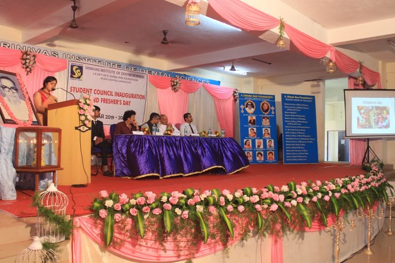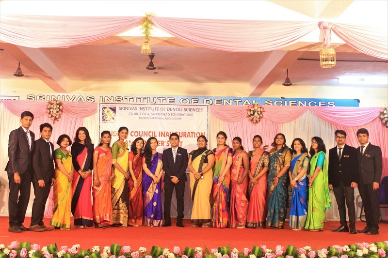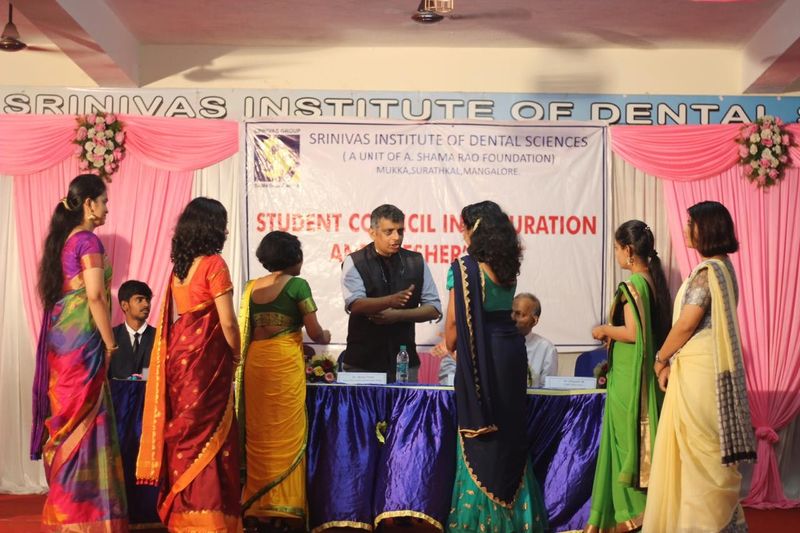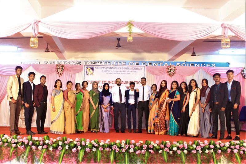 Inauguration of Student council 2019 was held at Srinivas Institute of Dental Sciences on 7th November 2019. The Chief Guests for the function were Dr. Shivasharan Shetty, Member, Dental Council of India and Syndicate member of RGUHS, and Rev. Fr. Cyril Pinto, Parish priest of Holy spirit church, Mukka. The chief guestsemphasized on the fact that there is wide array of scope for dentistry with changing trends and the ethics we need to follow as professionals for the betterment of the society. Prof. (Dr) Manoj Varma, Dean, Srinivas Institute of Dental Sciences welcomed the gathering and he motivated the students by his thought provoking message to be a better human in the society. Dr.Hemanth M, Student welfare officer, Srinivas institute of Dental Sciences introduced the new office bearer of student council. Mr. Gaurav K the new president of student council delivered the vote of thanks. Dr. Natasha and Dr. Ashwini compered the programme. Prof. (Dr) Lavanya Varma, Associate Dean, Srinivas Institute of Dental Sciences, other Heads of the Departments, Mr. Tom Thampi, the outgoing president were present at the function.
