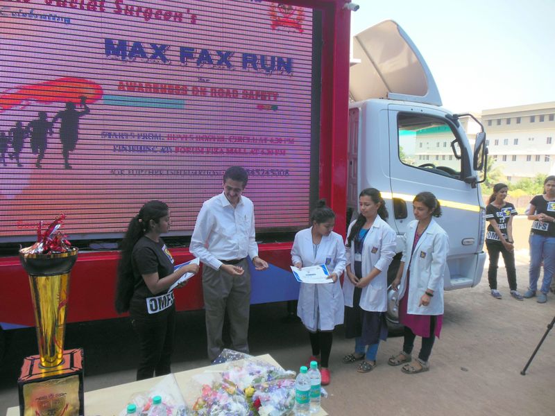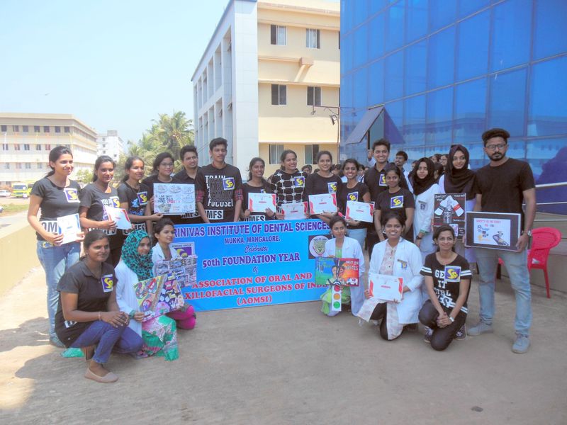 International OMFS Day was celebrated by the Department of Oral and Maxillofacial Surgery on 13th February 2019 at our campus ground. We received prominent dignitaries from AOMSI – Dr. K. Bonanthaya – President, Dr Preetham N Shetty – General Secretary, Dr Pramod Subhash – Treasurer, Dr Balasubramanya Kumar – State Secretary, Dr Musthafa Khader- Kanachur Institute of Medical Sciences, Dr Manjunath Rai – HOD of Oral and Maxillofacial Surgery along with Dr Deepak Pai, Dr Shreyas Sorake from A.J Institute of Dental Sciences and the coveted MAX FAX torch, where it was handed over to Dr. A. Srinivas Rao, Vice President of A. Shama Rao Foundation and Pro Chancellor of Srinivas University in the Presence of our Dean Prof (Dr.) Manoj Varma. An enthusiastic display of mime was held by the interns imbibing the essence of road safety.
