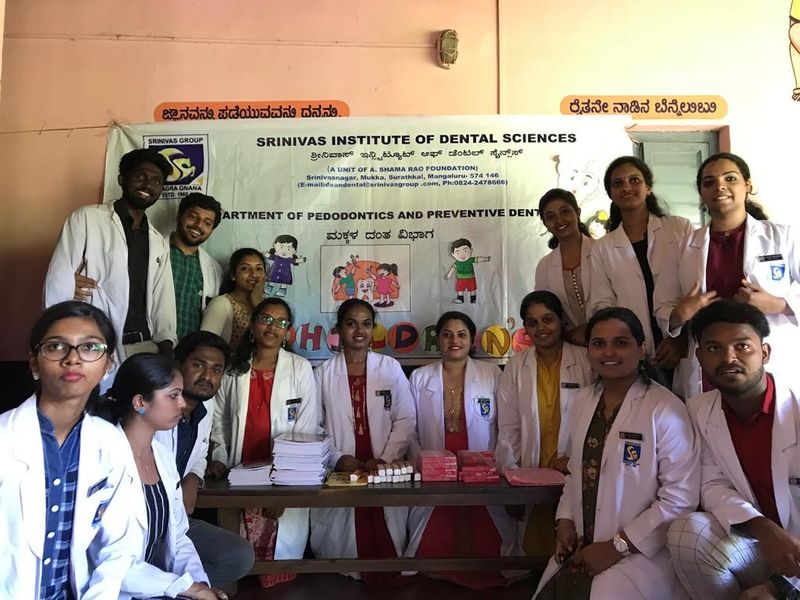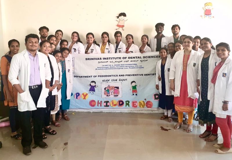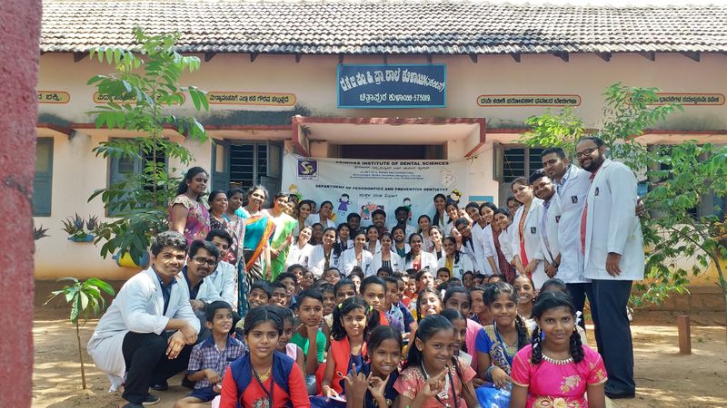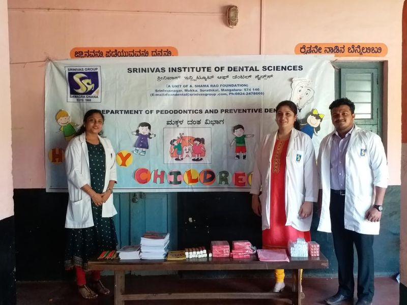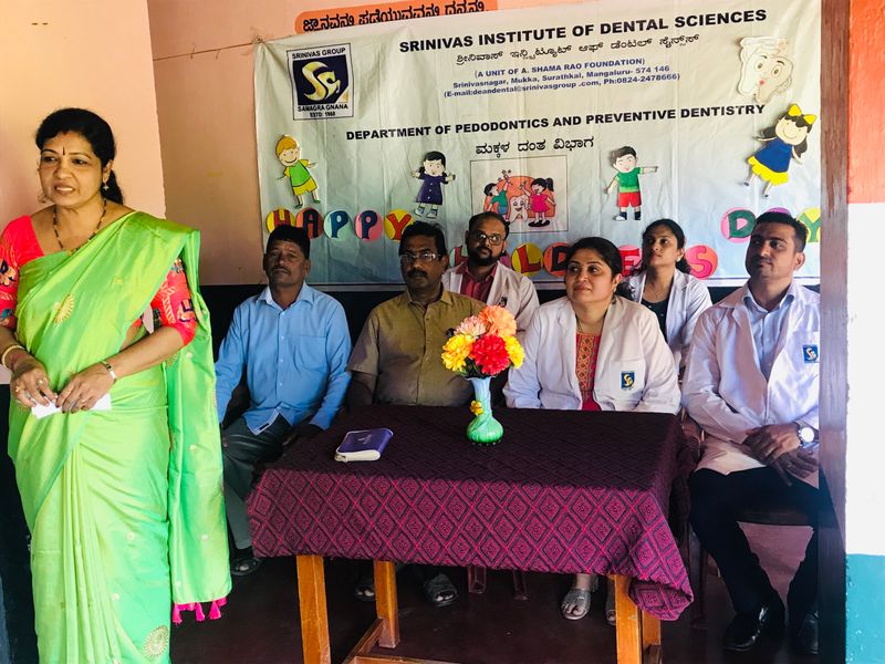 To celebrate the occasion of children's day, a programme was organised by , Srinivas Institute of Dental Sciences on 14-11-19 at Dakshina Kannada Zilla Panchayath Higher Primary School, Chitrapura under the guidance of Dean, Prof. Dr.Manoj Varma . The programme began with a skit on oral hygiene maintenance and dental trauma awareness by the interns . Games were conducted for each class students by the student council members of dental college and prizes were distributed. Pamphlets pertaining to all the dental treatment facilities available were distributed. Toothpastes , books and stationary were distributed to the school children . All kids enjoyed the programme and was well appreciated by the teachers of the school. Prof.Dr.K . Reshma Pai , Head of the Department of Pediatric and Preventive Dentistry gave an insight about the programme and also highlighted on the importance of primary teeth . Dr.Hemanth , Reader ,Dept.of Oral Pathology , , Dr.Sheehan Dsouza Senior lecturer, Dept.of Periodontics , Dr.Natasha Dsouza , Reader, Dept.of Paediatric and Preventive Dentistry and Dr.Harikrishnan , Senior lecturer ,Dept.of Paediatric and Preventive Dentistry played an important part in the awareness of oral health of the kids and have helped in making this programme successful.