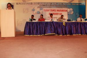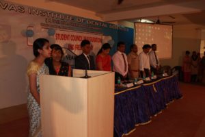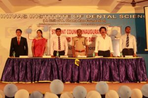 The college Inaugurated the student council for the year 2016-17 on 29-11-2016.The chief guest for the event was Dr. Sanjeev M. Patil, Deputy Commissioner of Police (Crime & Traffic) Mangalore, Guest of Honor for the programme was Dr. Shivasharan Shetty, Member of Dental Council of India. Prof. (Dr.) Lavyana Varma, Associate Dean welcomed and introduced the dignitaries. Ms. Ashwini Poojary, General Secretary, presented the annual report for the year 2015-16. Prof. (Dr.) Manoj Varma, Dean, SIDS addressed the gathering and spoke about their Characters of Leadership. Dr. Sanjeev M. Patil, Emphasized on leadership qualifies & ragging in campus. Dr. Shivasharan spoke on rules & regulation on ragging according to DCI. President and Vice President of A. Shama Rao Foundation conveyed their best wishes to be new council members. Dr. Hemanth, Reader Dept. of Oral Pathology delivered the vote of thanks