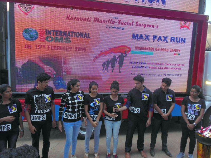International OMFS Day was celebrated by the Department of Oral and Maxillofacial Surgery on 13th February 2019 at our campus ground. We received prominent dignitaries from AOMSI – Dr. K. Bonanthaya – President, Dr Preetham N Shetty – General Secretary, Dr Pramod Subhash – Treasurer, Dr Balasubramanya Kumar – State Secretary, Dr Musthafa Khader- Kanachur Institute of Medical Sciences, Dr Manjunath Rai – HOD of Oral and Maxillofacial Surgery along with Dr Deepak Pai, Dr Shreyas Sorake from A.J Institute of Dental Sciences and the coveted MAX FAX torch, where it was handed over to Dr. A. Srinivas Rao, Vice President of A. Shama Rao Foundation and Pro Chancellor of Srinivas University in the Presence of our Dean Prof (Dr.) Manoj Varma. An enthusiastic display of mime was held by the interns imbibing the essence of road safety.
