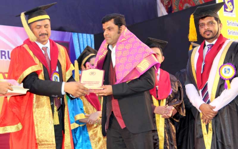 Founder's day of the A. Shama Rao foundation and the graduation ceremony for the first batch of BDS students of Srinivas Institute of Dental Sciences was held on 15th February 2017 at Srinivas Campus, Valachil. The function was inaugurated by Sri Kishore Alva, Executive Director & Joint President, Adani UPCL. Sri Udaya Kumar, Assistant General Manager, State Bank of India, Mangalore was the chief guest for the function. Prof (Dr) Manoj Varma, Dean of Srinivas Institute of Dental Sciences presented the Annual report of the year 2016 and congratulated the graduates on the occasion. Staffs were also felicitated for their achievements.