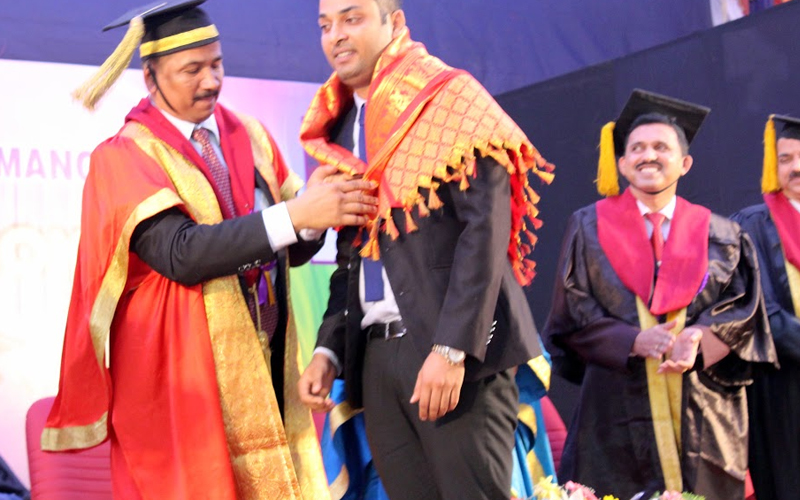 Dr. Dilip Quadras, Reader from the Department of Orthodontics was felicitated for completing PhD degree from Nitte University.